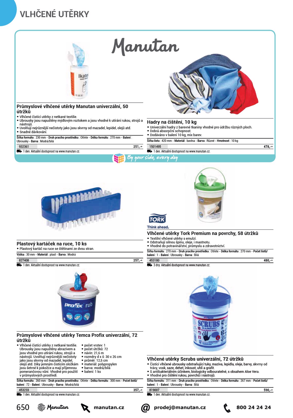 MOPY A STĚRKY NA PODLAHU Bavlněný třásňový mop Manutan, 5 ks • Mop se skládá z několika tenkých bavlněných provázků se zakončením k uchycení na násadu pro mopy. • Nahrazuje klasický hadr na mytí a usnadňuje tak údržbu podlah se středním až velkým znečištěním. • Vhodný pro suché i mokré použití. • Pro dosažení maximální životnosti mopu je nutno dodržovat tyto podmínky - maximální teplota praní 60 °C, nepoužívat bělidla a aviváž, nepoužívat sušičky a používat běžné prací prášky. SS Dodáváno bez držáku, bez tyče. Materiál : bavlna - Typ : třásňový - Hmotnost : 0,4 kg Množstevní sleva - - 5% 1 - 4 5 - 9 316024 485,-* 460,-* 1 den. Aktuální dostupnost na www.manutan.cz. - 10% 10 + 435,-* Bavlněný třásňový mop, 10 ks • Mop se skládá z několika tenkých bavlněných provázků uchycených v plastové hlavě se závitem. • Nahrazuje klasický hadr na mytí a usnadňuje tak údržbu podlah. • Vhodný pro suché i mokré použití. Materiál : bavlna - Typ : třásňový - Hmotnost : 0,22 kg Množstevní sleva 316029 - 1 - 4 733,-* - 5% 5 - 9 696,-* - 10% 10 + 659,-* 1 den. Aktuální dostupnost na www.manutan.cz. Držák třásňového mopu, 2 ks • Plastová násada na mop. • Lze spojit s tyčí o průměru 20 až 24 mm. Šířka : 18 cm - Délka : 135 mm Množstevní sleva 316001 - 1 - 4 186,-* - 5% 5 - 9 177,-* 1 den. Aktuální dostupnost na www.manutan.cz. - 10% 10 + 167,-* Hliníková tyč na plastový držák na mop, 140 cm • Hliníková tyč s celkovou délkou 130 cm. • Tvoří komplet společně s plastovým držákem a třásňovým mopem. Typ : pevná - Délka : 1400 mm - Barva : Šedá - Ø : 23 mm Množstevní sleva - - 5% 1 - 4 5 - 9 316002 166,-* 157,-* 1 den. Aktuální dostupnost na www.manutan.cz. - 10% 10 + 149,-* Podlahová stěrka, polypropylen • Podlahová stěrka určená ke stírání vody a vlhkých nečistot z podlahy. • Neabsorbuje tekutiny a tím brání množení bakterií v gumové části. • Vyrobena z polypropylenu s neoprenovou černou houbou. Délka : 550 mm - Barva : Zelená 316115 1 den. Aktuální dostupnost na www.manutan.cz. 284,-* Kovová tyč na třásňové mopy, 130 cm • Kovová tyč se závitem na třásňové mopy, potažená plastovým povlakem. Typ : pevná - Délka : 1300 mm - Barva : Modrá - Ø : 22 mm 316030 1 den. Aktuální dostupnost na www.manutan.cz. 103,-* 656 manutan.cz @ prodej@manutan.cz 800 24 24 24