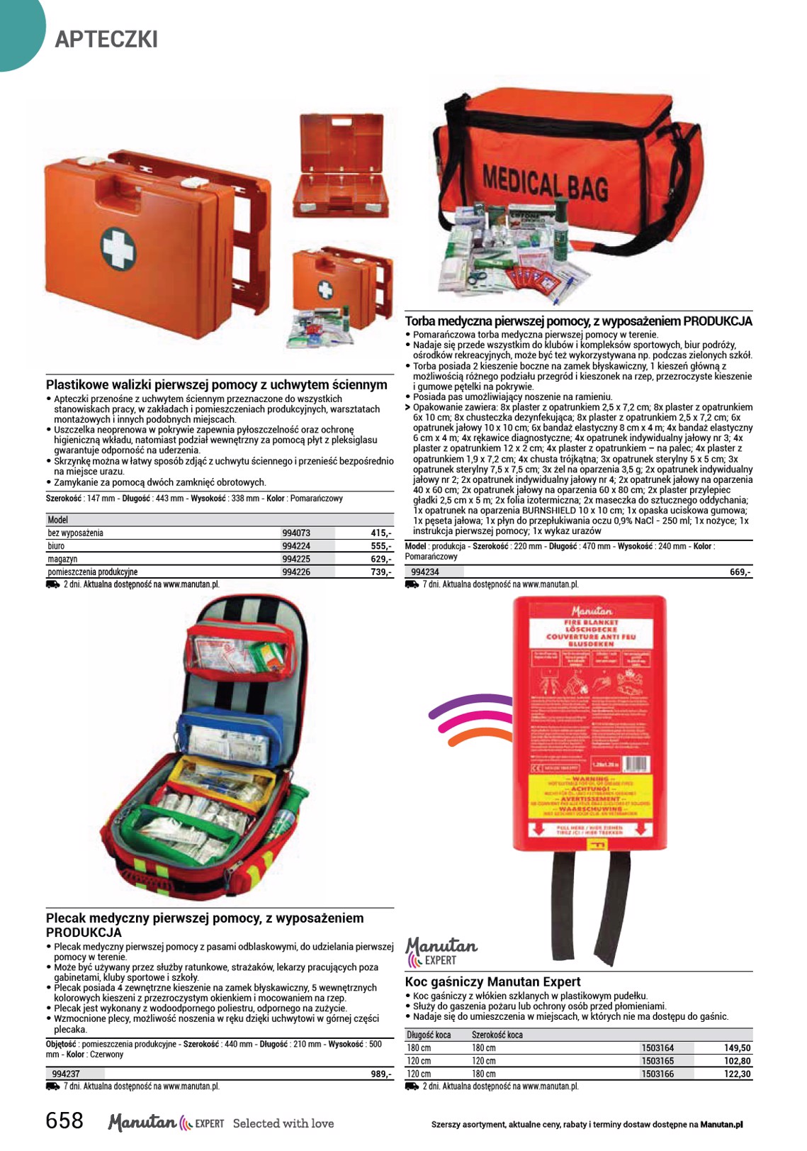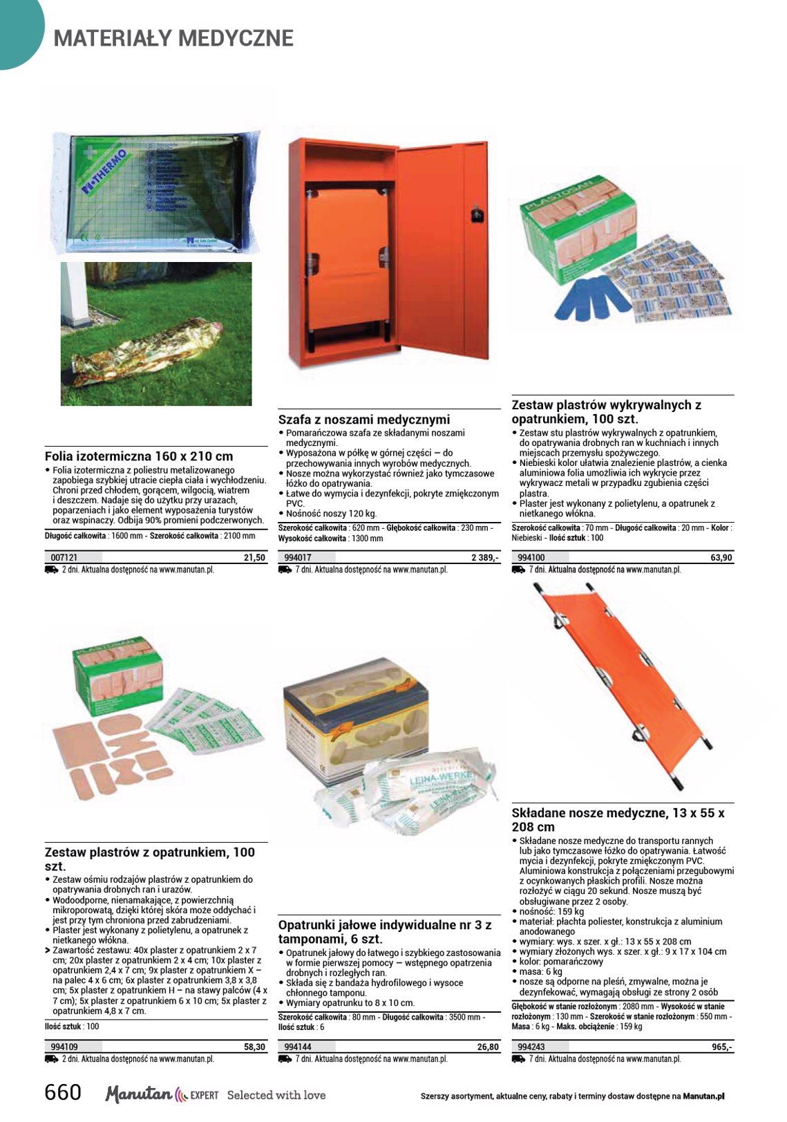 APTECZKI Metalowa apteczka ścienna • Metalowa apteczka ścienna przeznaczona do zakładów przemysłowych lub biur. • Wyposażona w okienko na zapasowy klucz (w razie konieczności szybkę można zbić). • Posiada dwie półki. • Zamykana na zamek kasetowy. • Powierzchnie wykończone białą powłoką komaxit.Wymiary apteczki to 60 x 45 x 16 cm. Szerokość : 450 mm - Głębokość : 160 mm - Materiał : Stal - Wysokość : 600 mm - Ilość drzwi : 1 - Kolor : Biały Typ bez wyposażenia biuro magazyn pomieszczenia produkcyjne 2 dni. Aktualna dostępność na www.manutan.pl. 510009 994206 994207 994208 415,- 530,- 595,- 705,- Metalowa apteczka ścienna • Stalowa apteczka ścienna przeznaczona do biur, magazynów oraz do środowiska zapylonego. • Posiada uszczelkę przeciwpyłową w drzwiach. • Wyposażona w dwie półki oraz dwie przegródki w drzwiczkach. • Zamykana na zamek kasetowy. • Powierzchnia pokryta białym komaxitem. • Wymiary apteczki to 45 x 35 x 15 cm. Szerokość : 350 mm - Głębokość : 150 mm - Materiał : Stal - Wysokość : 450 mm - Ilość drzwi : 1 - Kolor : Biały Typ bez wyposażenia biuro magazyn pomieszczenia produkcyjne 2 dni. Aktualna dostępność na www.manutan.pl. 994043 994203 994204 994205 399,- 485,- 555,- 655,- Plastikowe walizki pierwszej pomocy z uchwytem ściennym • Apteczki przenośne z uchwytem ściennym przeznaczone do wszystkich stanowiskach pracy, w zakładach i pomieszczeniach produkcyjnych, warsztatach montażowych i innych podobnych miejscach. • Uszczelka neoprenowa w pokrywie zapewnia pyłoszczelność oraz ochronę higieniczną wkładu, natomiast podział wewnętrzny za pomocą płyt z pleksiglasu – odporność na uderzenia. • Skrzynkę można w łatwy sposób zdjąć z uchwytu ściennego i przenieść bezpośrednio na miejsce urazu. • Zamykanie za pomocą dwóch zamknięć obrotowych. Szerokość : 140 mm - Długość : 400 mm - Wysokość : 270 mm - Kolor : Zielony Model bez wyposażenia biuro magazyn pomieszczenia produkcyjne 7 dni. Aktualna dostępność na www.manutan.pl. 994180 994229 994230 994231 255,- 389,- 465,- 575,- Metalowa apteczka ścienna Manutan Expert, zamykana 45,5 × 31 × 14,5 cm • Metalowa apteczka do udzielania pierwszej pomocy na stanowiskach pracy i w domach. • Konstrukcja stalowa pokryta lakierem proszkowym odpornym na promieniowanie UV. • Dwie przezroczyste plastikowe półki z możliwością regulacji, półki na drzwiach. • Zamykane na zamek cylindryczny. OO Sprzedawane w zestawie z 2 kluczami, 2 plastikowymi półkami, 1 półeczką na drzwiach. SS Brak wyrobów medycznych w zestawie. Szerokość : 31 cm - Głębokość : 14,5 cm - Wysokość : 45,5 cm - Ilość drzwi : 1 - Kolor : Biały 1505023 2 dni. Aktualna dostępność na www.manutan.pl. 379,- 656