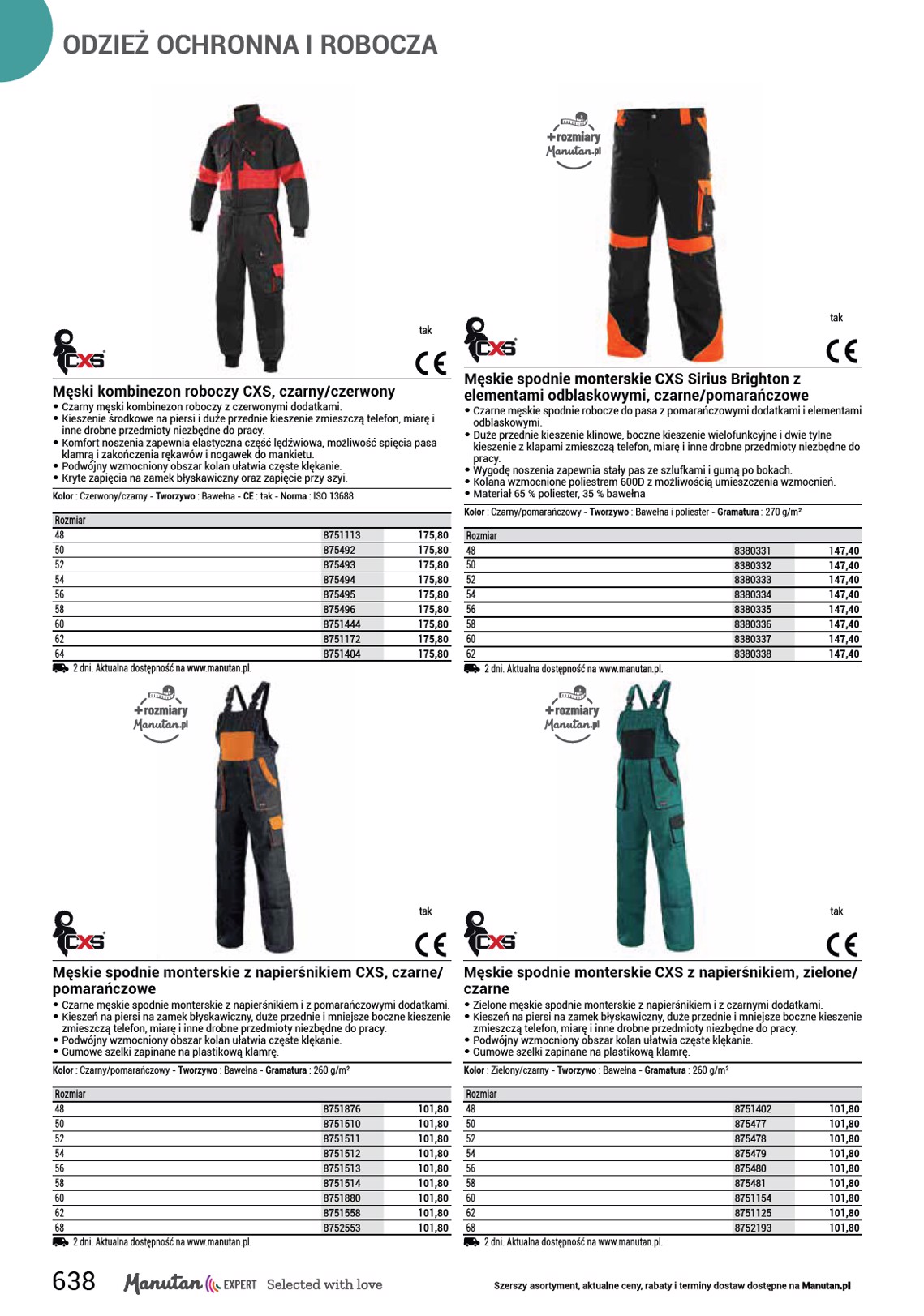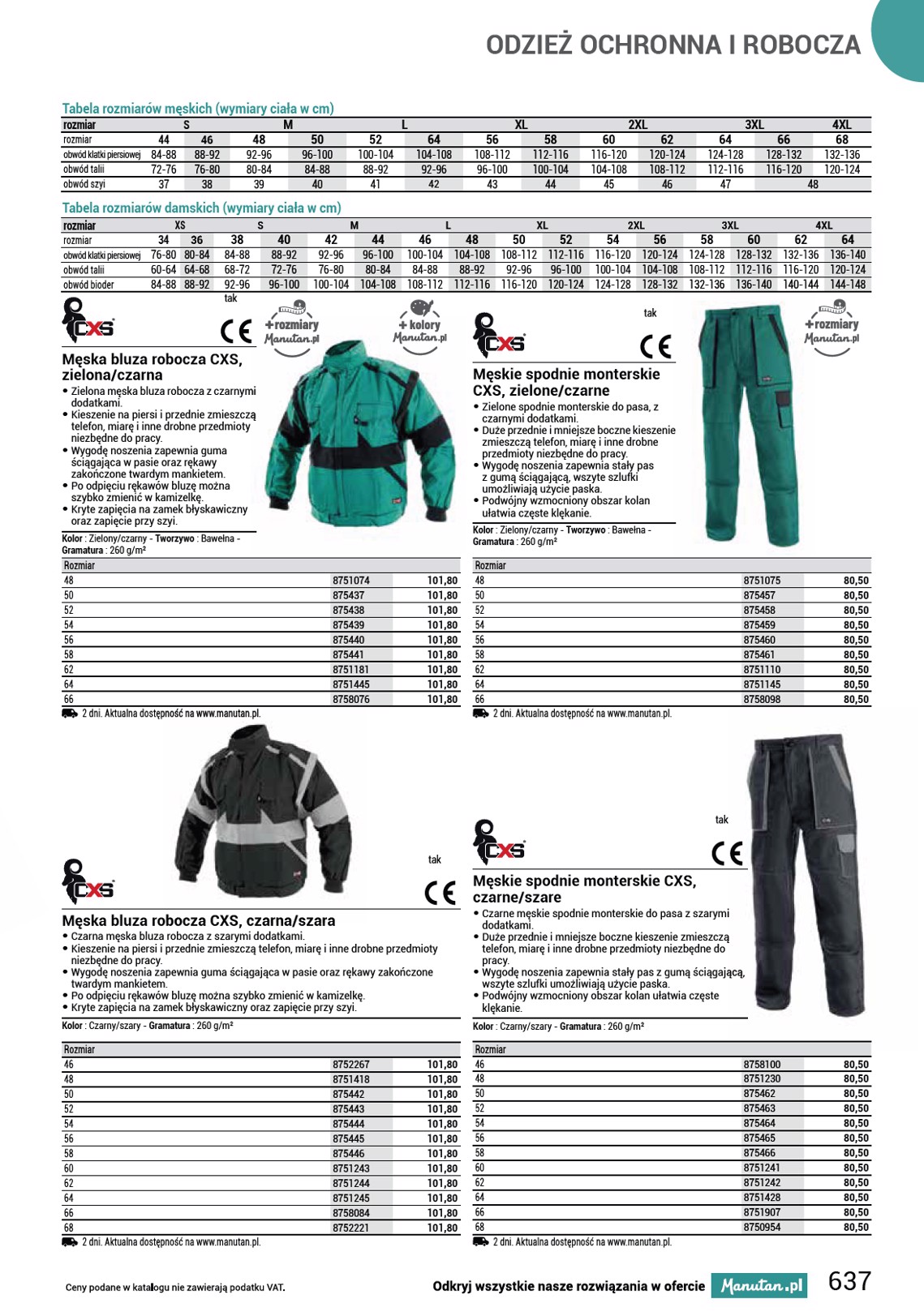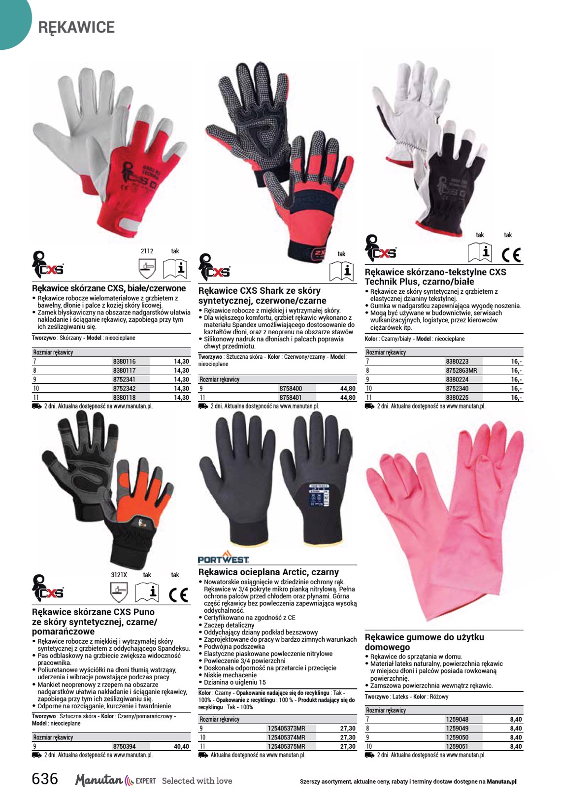 RĘKAWICE Materiał - własności mechaniczne i chemiczne lateks naturalny Sprężystość i elastyczność Przedarcie Przecięcie Rozdarcie Przebicie Kwasy Zasady Oleje i tłuszcze Węglowodory Rozpuszczalniki aromatyczne (styren.) Rozpuszczalniki chlorowe (perchloroetylen.) Rozpuszczalniki ketonowe (aceton.) Acetaty (butylacetat) Glykoletery (etoxyetycelat) Zalety lateks naturalny Doskonała elastyczność i odporność na rozdarcia. Dobra odporność na działanie wielu innych kwasów i ketonów. nitryl Bardzo dobra odporność na przedarcia i przebicia. Bardzo dobra odporność na działanie pochodnych węglowodorowych. nitryl PVC PVC Dobra odporność na działanie kwasów i zasad. Ograniczenia Należy unikać kontaktu z olejami, tłuszczami i związkami węglowodorowymi. Proteiny naturalnego lateksu mogą wywoływać alergię. Należy unikać kontaktu z rozpuszczalnikami, które zawierają ketony i związki organiczne zawierające azot. Mała odporność mechaniczna. Należy unikać kontaktu z ketonami, rozpuszczalnikami aromatycznymi i chlorowymi. W tabelce podano dane ogólne. Dane szczegółowe znajdują się w dokumentacji technicznej. Im dłuższa jest kolorowa linia, tym odporniejsza jest tkanina na dane niebezpieczeństwo. 4131 tak Rękawice poliestrowe CXS częściowo powlekane poliuretanem, czarne • Rękawice robocze powlekane, z poliestru, nie zawierają silikonu. • Warstwa poliuretanowa zapewnia najwyższą odporność na przebicia. Powierzchnia z powłoką : 3/4 ręki - Kolor : Czarny - Model : nieocieplane Rozmiar rękawicy 6 8380098 7 8380099 8 8751910 9 8751911 10 8751912 11 8380100 2 dni. Aktualna dostępność na www.manutan.pl. 52,30 52,30 52,30 52,30 52,30 52,30 4131 tak tak tak Rękawice bawełniane CXS nakrapiane, białe • Rękawice robocze z dzianiny bawełnianej, nakrapiane PVC na dłoniach i w dolnej części palców. • Gumka na nadgarstku zwiększa wzmocnienia rękawic na rękach. Tworzywo : Bawełna - Kolor : Biały - Model : nieocieplane Rozmiar rękawicy 6 875040 54,- 7 875041 54,- 8 875042 54,- 9 875043 54,- 10 875044 54,- 2 dni. Aktualna dostępność na www.manutan.pl. Rękawice poliestrowe CXS częściowo powlekane nitrylem, szare/białe • Rękawice robocze powlekane, z poliestru, wysoce odporne na rozdarcia. • Warstwa nitrylu pokrywa dłoń i palce. Powierzchnia z powłoką : 3/4 ręki - Kolor : Biały/szary - Model : nieocieplane Rozmiar rękawicy 6 8752345 5,40 7 8752346 5,40 8 8752347 5,40 9 8752348 5,40 10 8752349 5,40 2 dni. Aktualna dostępność na www.manutan.pl. Rękawice poliestrowe CXS częściowo powlekane poliuretanem, białe • Rękawice robocze powlekane, z poliestru, nie zawierają silikonu. • Warstwa poliuretanowa zapewnia najwyższą odporność na przebicia. Powierzchnia z powłoką : 3/4 ręki - Kolor : Biały - Model : nieocieplane Rozmiar rękawicy 6 8380094 7 8380095 8 8380096 9 8751555 10 8751556 11 8380097 2 dni. Aktualna dostępność na www.manutan.pl. 49,80 49,80 49,80 49,80 49,80 49,80 634