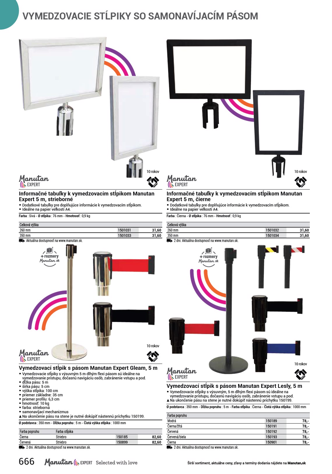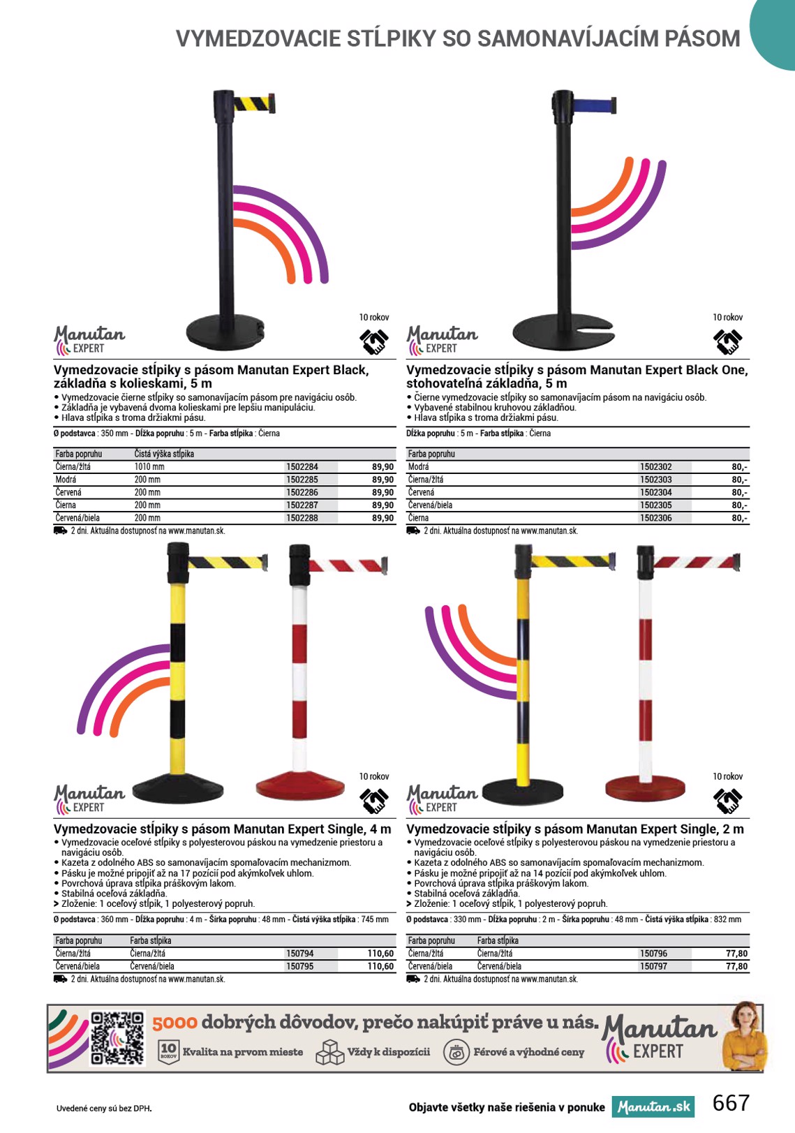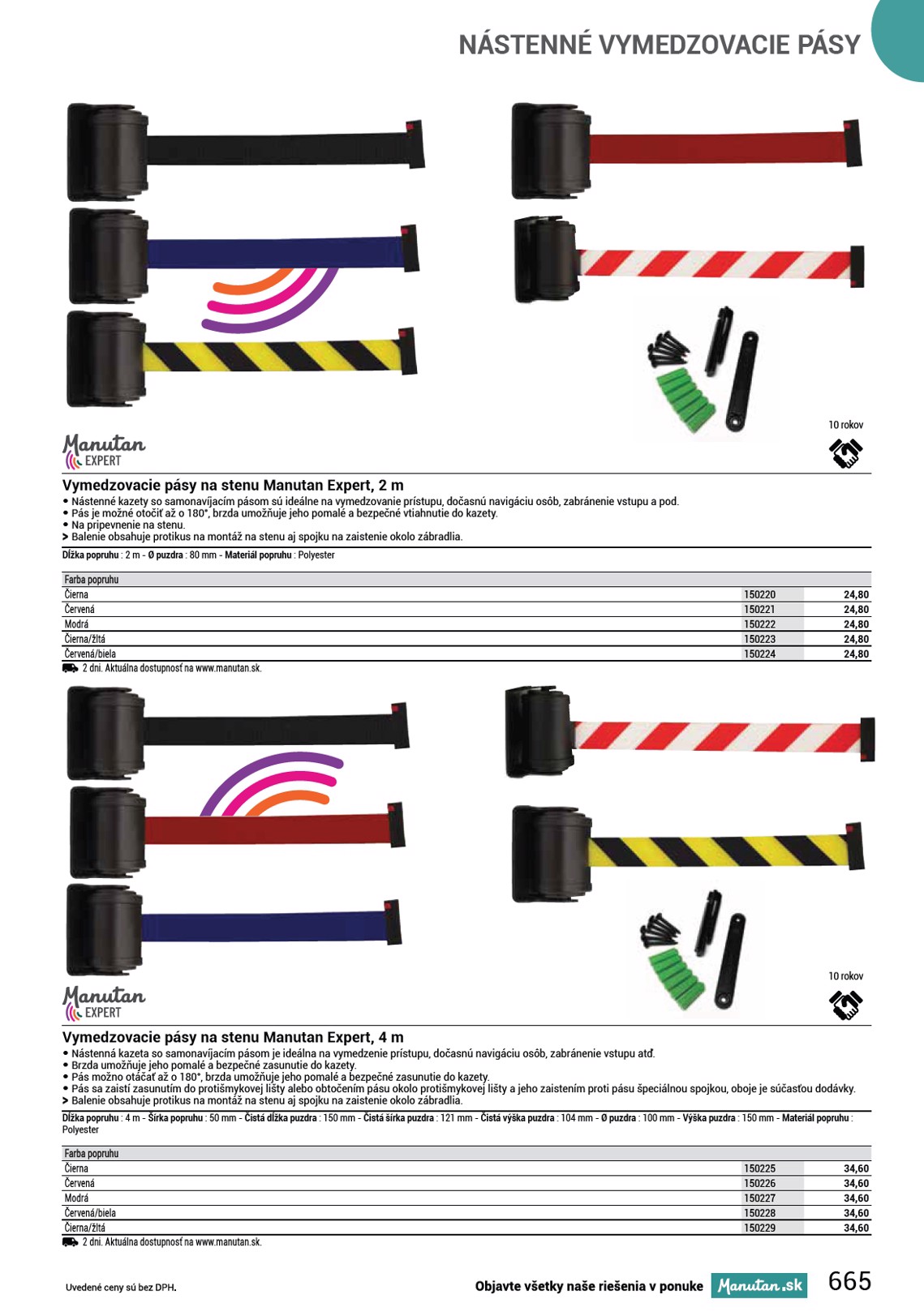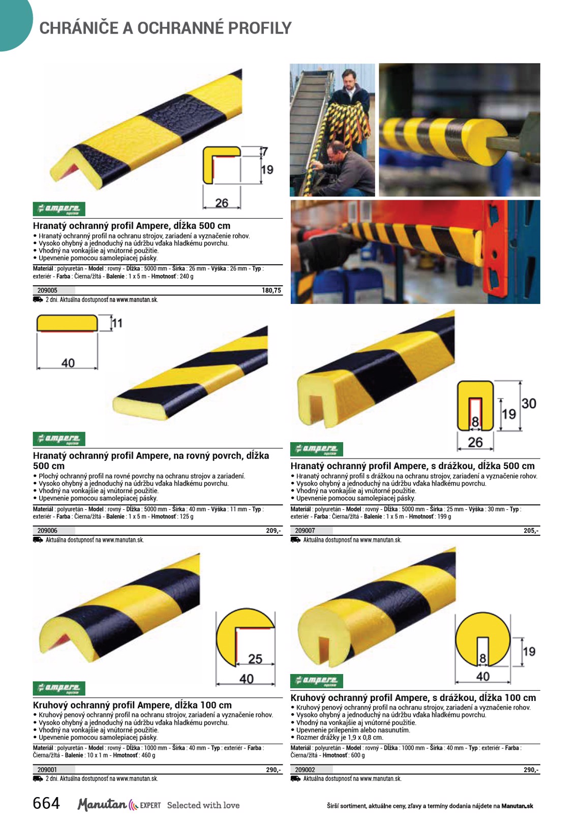 CHRÁNIČE A OCHRANNÉ PROFILY Protišmykové profily na schody COBAGRiP, čierne/žlté • Protišmykové schodiskové profily pre vyššiu bezpečnosť na schodoch v interiéri aj exteriéri. • Odolný, drsný povrch, skosená hrana pre vysokú bezpečnosť. • Jednoduché pripevnenie pomocou lepidla alebo pomocou skrutiek. • Materiál profilu: sklolaminát. • Používajte v interiéri aj exteriéri. • Lišty spĺňajú normy DIN 51130 – R13, BS 7676-2 – nízky sklzový potenciál, ohňovzdornosť DIN 13501: Bfl – s1 (2018) EN ISO 11925-2:2020 EN ISO 9239-1:2010 (2021). SS Montážny materiál nie je súčasťou balenia. Farba : Čierna/žltá - Šírka : 55 mm - Výška : 55 mm - Hrúbka : 5 mm - Min. prevádzková teplota : -50 °C - Max. prevádzková teplota : 90 °C - Použiteľné v prostredí : Exteriér Dĺžka Hmotnosť 1000 mm 0,6 kg 1500 mm 0,9 kg 2000 mm 1,2 kg 3000 mm 1,8 kg 2 dni. Aktuálna dostupnosť na www.manutan.sk. 731274 731275 731276 731277 35,25 62,75 87,90 101,75 Kovový chránič regálov Manutan Expert, typ U • Kovový rohový chránič sa používa na spoľahlivé ohradenie v skladoch. • Nutné ukotviť k zemi pomocou skrutiek. OO Súčasťou balenia je kotviaci materiál. Typ : U - Farba : Žltá - Výška : 350 mm - Ø : 98 mm 150501 2 dni. Aktuálna dostupnosť na www.manutan.sk. 23,90 Kovový chránič regálov Manutan Expert, typ L • Kovový rohový chránič sa používa na spoľahlivé ohradenie rohov a stojka v skladoch. • Nutné ukotviť k zemi pomocou skrutiek. OO Súčasťou balenia je kotviaci materiál. Typ : L - Farba : Žltá - Šírka : 150 mm - Hrúbka : 5 mm - Výška : 350 mm 150499 2 dni. Aktuálna dostupnosť na www.manutan.sk. 35,30 Priečniky pre chrániče regálov, teleskopické • Priečniky s teleskopicky nastaviteľnou dĺžkou slúžia v kombinácii s rohovými zábranami ako ochrana regálových stĺpov. OO Predaj po 1 ks. Farba : Žltá Min. dĺžka Max. dĺžka 900 mm 1350 mm 1850 mm 2750 mm Aktuálna dostupnosť na www.manutan.sk. 532063 532064 70,50 109,25 Kovový chránič regálov, typ L • Kovový rohový chránič sa používa na spoľahlivé ohradenie rohov a stĺpikov vo všetkých skladoch. • Nutné ukotviť k zemi pomocou skrutiek pre regálové zábrany. • Je možné opatriť priečnikom pre pozdĺžnu ochranu regálov. Typ : L - Farba : Žltá - Šírka : 140 mm - Hrúbka : 5 mm - Výška : 350 mm 532062 Aktuálna dostupnosť na www.manutan.sk. 45,50 662