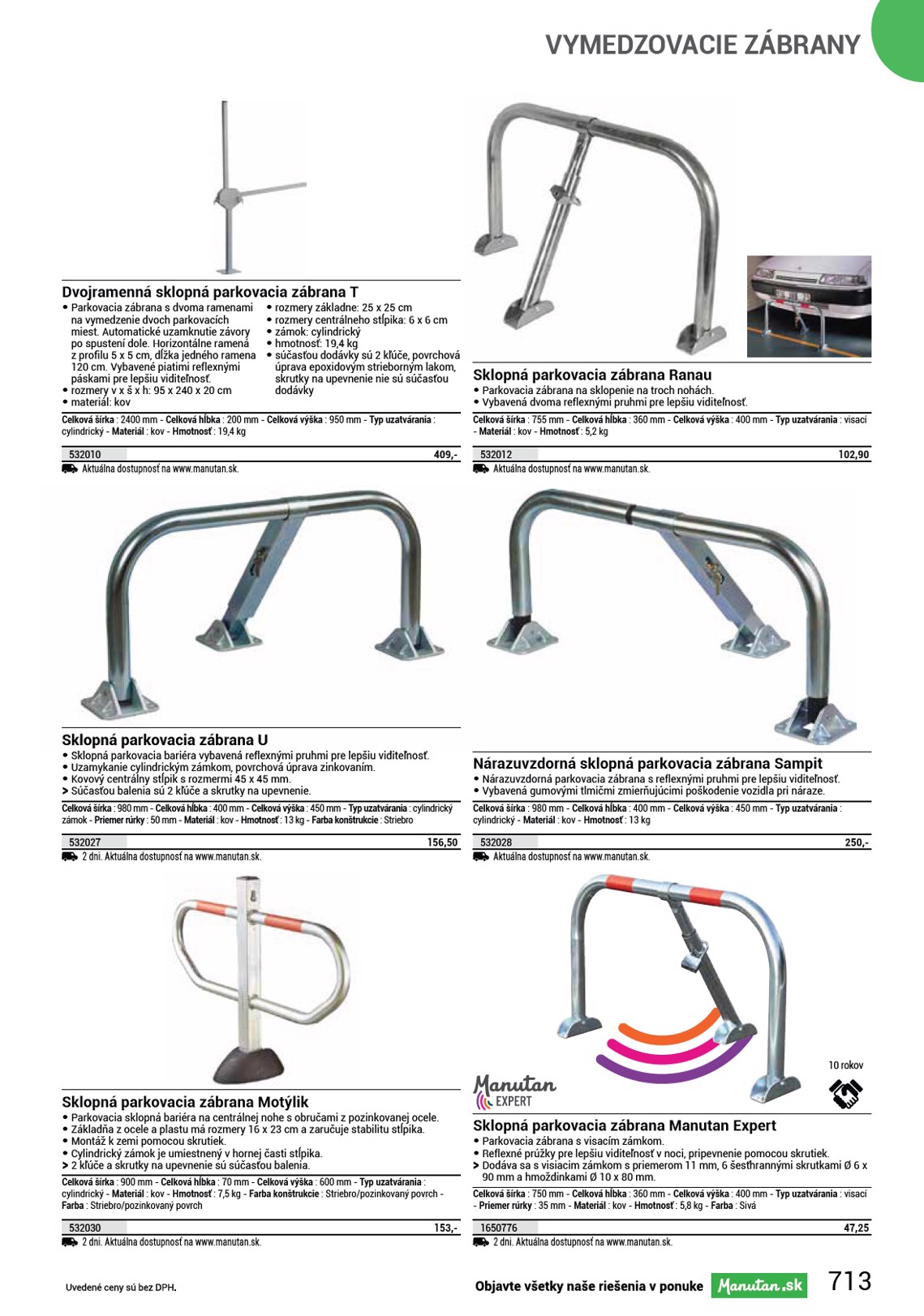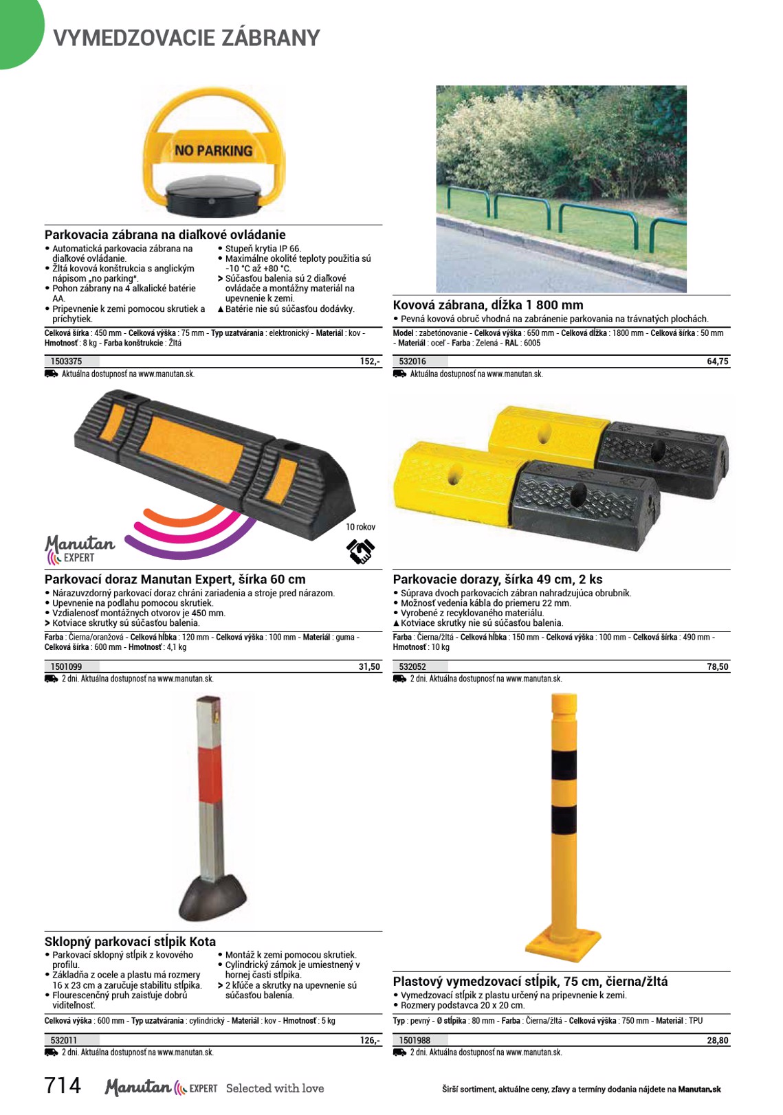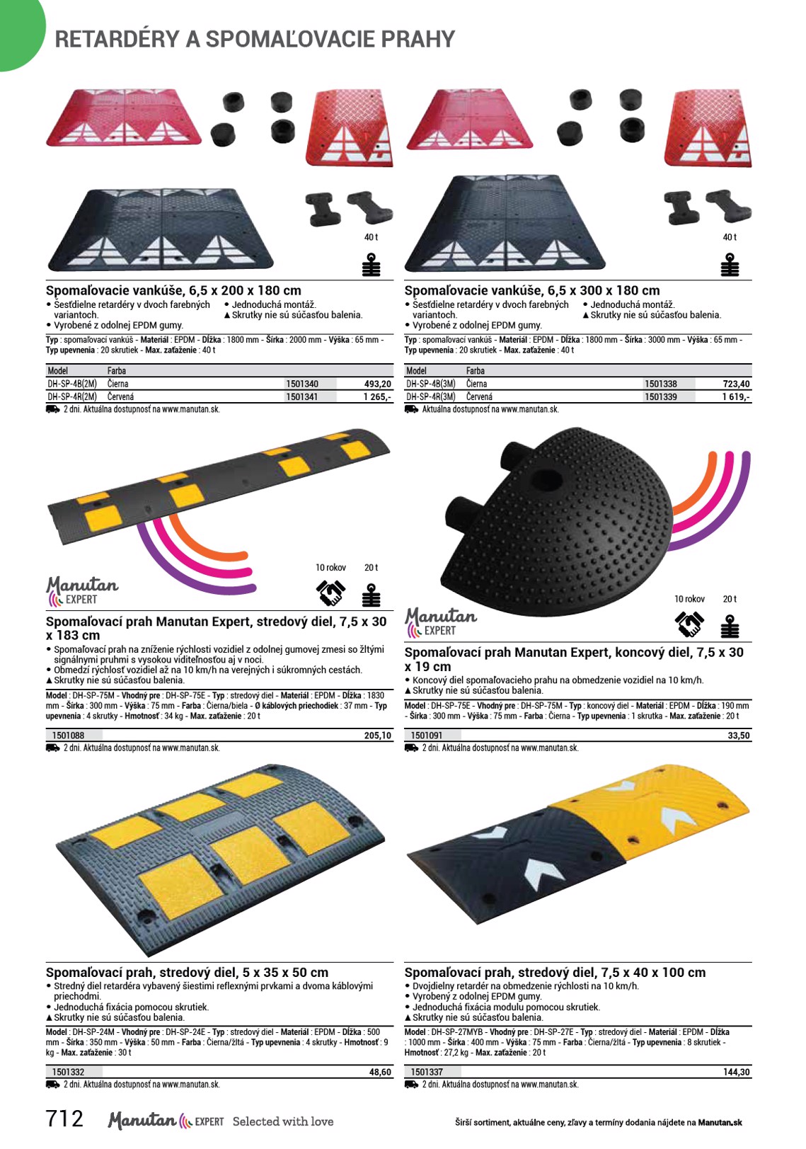 VYMEDZOVACIE STĹPIKY 10 rokov 12000 kg 10 rokov 12 t Káblový prejazd Manutan Expert Two s horným krytom • Ochranná káblová lišta s odnímateľným • počet otvorov: 2 vekom určená na 2 káble. Protišmykový • materiál: PVC povrch, ľahká manipulácia. • hmotnosť: 4,2 kg • farba: čierna/žltá • maximálne zaťaženie: 12 t • v x š x h: 45 x 250 x 1000 mm SS Prejazd nemá otvory na skrutky, takže • priemer otvoru: 30 mm ju nemožno pripevniť k zemi. Ø káblových priechodiek : 30 mm - Celková dĺžka : 1045 mm - Celková šírka : 270 mm - Celková výška : 60 mm - Určené na kábel s Ø : 30 mm - Max. počet káblov : 2 - Max. zaťaženie : 12000 kg - Hmotnosť : 4,2 kg - Farba : Čierna/žltá 1501093 2 dni. Aktuálna dostupnosť na www.manutan.sk. 50,30 Káblový most Manutan Expert s krytom, rovný • Ochranná káblová lišta s • priemer otvoru: 55 mm protišmykovým povrchom je určená na • počet otvorov: 3 tri káble. • materiál: PVC • farba: čierna/žltá • hmotnosť: 10,3 kg • v x š x h: 8 x 51 x 98 cm • maximálne zaťaženie: 12 t Celková dĺžka : 98 cm - Celková šírka : 51 cm - Celková výška : 8 cm - Určené na kábel s Ø : 55 mm - Max. zaťaženie : 12 t - Materiál : plast - Hmotnosť : 10,3 kg - Farba : Čierna/žltá 1500063 2 dni. Aktuálna dostupnosť na www.manutan.sk. 100,80 Nájazd na obrubník, guma, výška 50 mm • Gumový nájazd na obrubník slúži na ľahké nabehnutie na obrubníky s výškou 5 cm bez poškodenia kolies vozidla. • Vyrobený z EPDM kaučuku s vystužením oceľovým drôtom. • Nosnosť nájazdu až 40 t. • Povrch nájazdov je vybavený profilovanými výstupkami, ktoré zabraňujú preklzu kolies vozidla. • Pre vyššiu bezpečnosť a viditeľnosť je nájazd vybavený reflexnými prvkami. • Upevnenie pomocou kotviaceho materiálu do predvŕtaných otvorov (skrutkami, príchytkami). SS Montážny materiál nie je súčasťou balenia a je nutné ho dokúpiť zvlášť. 994300 2 dni. Aktuálna dostupnosť na www.manutan.sk. 39,50 Parkovacie dorazy Joel • Gumové parkovacie bloky pre lepšiu organizáciu a vymedzenie parkovacieho priestoru. • Vysoká odolnosť proti nárazom a poveternostným podmienkam. • Vybavené reflexnými páskami pre dobrú viditeľnosť. • Jednoduchá montáž ukotvením pomocou skrutiek do zeme. SS Montážny materiál nie je súčasťou balenia. Farba : Čierna/žltá - Celková hĺbka : 150 mm - Celková výška : 100 mm - Materiál : guma Celková šírka Hmotnosť 900 mm 7 kg 1830 mm 13,5 kg 2 dni. Aktuálna dostupnosť na www.manutan.sk. 1501989 1501990 54,50 112,- Káblové mosty GP2, rovné, 9 m • Univerzálne káblové chrániče na vnútorné aj vonkajšie použitie. • Variant so žltými bezpečnostnými pásmi zvyšuje viditeľnosť prejazdu. • Znižujú riziko zakopnutia spôsobené voľne položenými káblami. • Zabraňujú nežiaducemu vyťahovaniu či poškodzovaniu káblov. • Na uloženie káblov slúži vnútorný otvor 10 x 30 mm. Celková dĺžka : 9 m - Celková šírka : 83 mm - Celková výška : 14 mm - Materiál : PVC - Hmotnosť : 6,85 kg - Recyklovateľné obaly : Áno - 100% Farba Čierna Čierna/žltá Aktuálna dostupnosť na www.manutan.sk. 731141 731145 153,75 167,50 Káblové mosty GP1, rovné, 3 m • Univerzálne káblové chrániče na vnútorné aj vonkajšie použitie. • Variant so žltými bezpečnostnými pásmi zvyšuje viditeľnosť prejazdu. • Znižujú riziko zakopnutia spôsobené voľne položenými káblami. • Zabraňujú nežiaducemu vyťahovaniu či poškodzovaniu káblov. • Na uloženie káblov slúži vnútorný otvor 8 x 14 mm. Celková dĺžka : 3 m - Celková šírka : 68 mm - Celková výška : 11 mm - Materiál : PVC - Hmotnosť : 1,8 kg - Recyklovaný obal : 100 % - Recyklovateľné obaly : Áno - 100% Farba Čierna Čierna/žltá Aktuálna dostupnosť na www.manutan.sk. 731140 731144 42,90 56,- 715