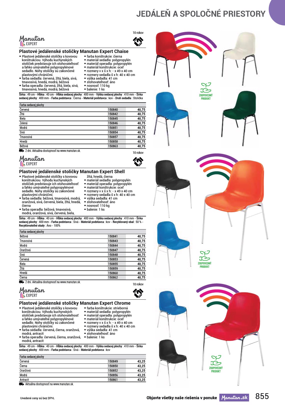 JEDÁLEŇ A SPOLOČNÉ PRIESTORY 10 rokov Plastové jedálenské stoličky • Plastové jedálenské stoličky s kovovou konštrukciou. Výhodu kuchynských stoličiek predstavuje ich stohovateľnosť a ľahko umývateľné polypropylénové sedadlo. Nohy stoličky sú zakončené plastovými chráničmi. • farba sedadla: červená, žltá, biela, sivá, tmavosivá, hnedá, modrá, béžová • farba operadla: červená, žltá, biela, sivá, tmavosivá, hnedá, modrá, béžová Manutan Expert Chaise • farba konštrukcie: čierna • materiál sedadla: polypropylén • materiál operadla: polypropylén • materiál konštrukcie: oceľ • rozmery v x š x h: - x 49 x 40 cm • rozmery sedadla š x h: 40 x 40 cm • výška sedadla: 41 cm • stohovateľnosť: áno • nosnosť: 110 kg • balenie: 1 ks Šírka : 49 cm - Hĺbka : 40 cm - Hĺbka sedacej plochy : 400 mm - Výška sedacej plochy : 410 mm - Šírka sedacej plochy : 400 mm - Farba podstavca : Čierna - Materiál podstavca : kov - Druh sedadla : Stolička Farba sedacej plochy Červená Žltá Biela Zelená Modrá Sivá Tmavosivá Hnedá Béžová 2 dni. Aktuálna dostupnosť na www.manutan.sk. 150840 150842 150845 150846 150851 150854 150857 150858 150863 40,75 40,75 40,75 40,75 40,75 40,75 40,75 40,75 40,75 10 rokov Plastové jedálenské stoličky Manutan Expert Shell • Plastové jedálenské stoličky s kovovou žltá, hnedá, čierna konštrukciou. Výhodu kuchynských • materiál sedadla: polypropylén stoličiek predstavuje ich stohovateľnosť • materiál operadla: polypropylén a ľahko umývateľné polypropylénové • materiál konštrukcie: oceľ sedadlo. Nohy stoličky sú zakončené • rozmery v x š x h: - x 49 x 40 cm plastovými chráničmi. • rozmery sedadla š x h: 40 x 40 cm • farba sedadla: béžová, tmavosivá, modrá, • výška sedadla: 41 cm oranžová, sivá, červená, biela, žltá, hnedá, • stohovateľnosť: áno čierna • nosnosť: 110 kg • farba operadla: béžová, tmavosivá, • balenie: 1 ks modrá, oranžová, sivá, červená, biela, Šírka : 49 cm - Hĺbka : 40 cm - Hĺbka sedacej plochy : 400 mm - Výška sedacej plochy : 410 mm - Šírka sedacej plochy : 400 mm - Farba podstavca : Sivá - Materiál podstavca : kov - Recyklovaný obal : 50 % - Recyklovateľné obaly : Áno - 100% Farba sedacej plochy Béžová Tmavosivá Modrá Oranžová Sivá Červená Biela Žltá Hnedá Čierna 2 dni. Aktuálna dostupnosť na www.manutan.sk. 150841 150843 150844 150847 150848 150853 150855 150859 150860 150862 40,75 40,75 40,75 40,75 40,75 40,75 40,75 40,75 40,75 40,75 10 rokov Plastové jedálenské stoličky Manutan Expert Chrome • Plastové jedálenské stoličky s kovovou • farba konštrukcie: strieborná konštrukciou. Výhodu kuchynských • materiál sedadla: polypropylén stoličiek predstavuje ich stohovateľnosť • materiál operadla: polypropylén a ľahko umývateľné polypropylénové • materiál konštrukcie: oceľ sedadlo. Nohy stoličky sú zakončené • rozmery v x š x h: - x 49 x 40 cm plastovými chráničmi. • rozmery sedadla š x h: 40 x 40 cm • farba sedadla: červená, čierna, oranžová, • výška sedadla: 41 cm modrá, antracit • stohovateľnosť: áno • farba operadla: červená, čierna, oranžová, • balenie: 1 ks modrá, antracit Šírka : 49 cm - Hĺbka : 40 cm - Hĺbka sedacej plochy : 400 mm - Výška sedacej plochy : 410 mm - Šírka sedacej plochy : 400 mm - Farba podstavca : Sivá - Materiál podstavca : kov Farba sedacej plochy Červená Čierna Oranžová Modrá Antracit Aktuálna dostupnosť na www.manutan.sk. 150849 150850 150852 150856 150861 43,25 43,25 43,25 43,25 43,25 855