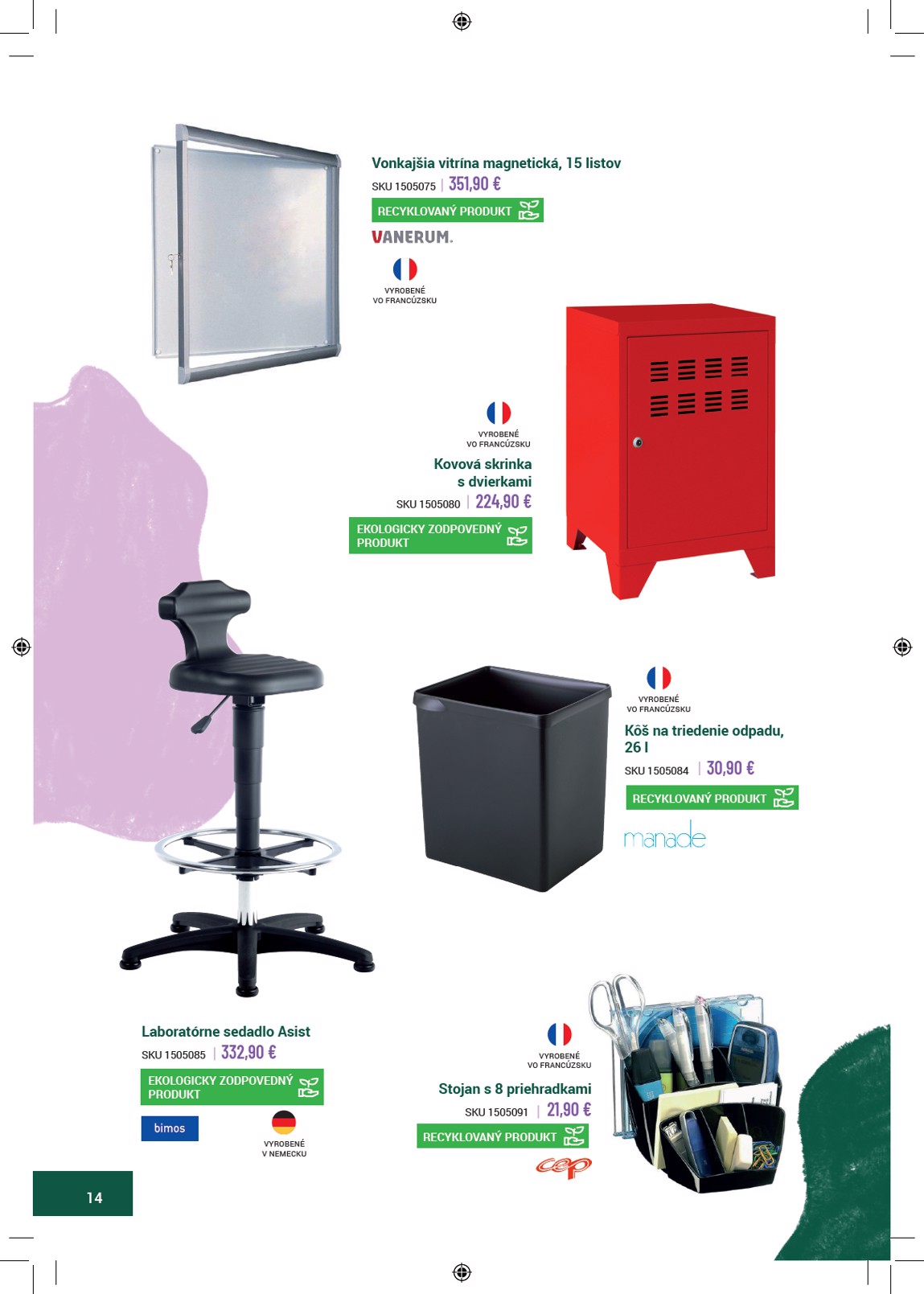 Plastové vedierka so žmýkačom Manutan, 2 x 15 l SKU 1505110 29,90 € EKOLOGICKY ZODPOVEDNÝ PRODUKT VYROBENÉ V EÚ Handry na čistenie, 10 kg SKU 1501495 31,80 € EKOLOGICKY ZODPOVEDNÝ PRODUKT VYROBENÉ VO FRANCÚZSKU Plastový odpadkový kôš CEP, čierny, 15 l SKU 1505104 16,90 € ODPADOVÉ HOSPODÁRSTVO VYROBENÉ V EÚ VYROBENÉ VO FRANCÚZSKU Odpadkový kôš - 40 L SKU 1505131 42,90 € RECYKLOVANÝ PRODUKT 19